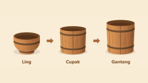 Soalan itu timbul kerana pada ketika itu, masyarakat menggunakan sistem sukatan tradisional. Ling merupakan sukatan yang paling kecil, manakala cupak dan gantang pula adalah sukatan yang lebih besar. Dalam kiraan lama, satu ling bersamaan setengah cupak, manakala empat cupak pula menyamai satu gantang. Oleh kerana ingin benar-benar pasti agar tidak tersilap sukatan, pertanyaan itu diulang beberapa kali oleh si anak.